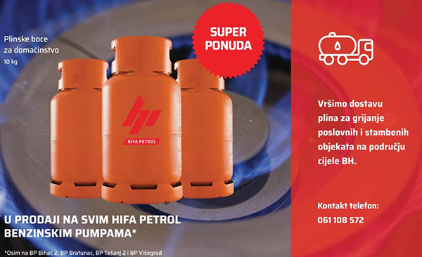 Hifa Petrol vrši prodaju i distribuciju ukapljenog plina u bocama na području Bosne i Hercegovine po maloprodajnim cijenama plina važećim na dan isporuke.